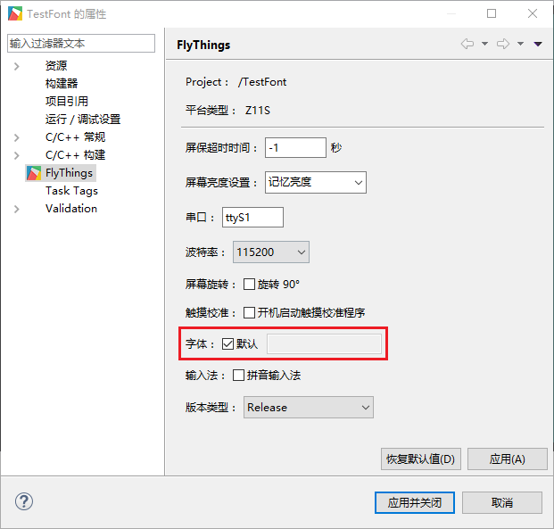 FlyThings系统默认打包的字体库是思源黑体字体,我们可以查看项目属性: