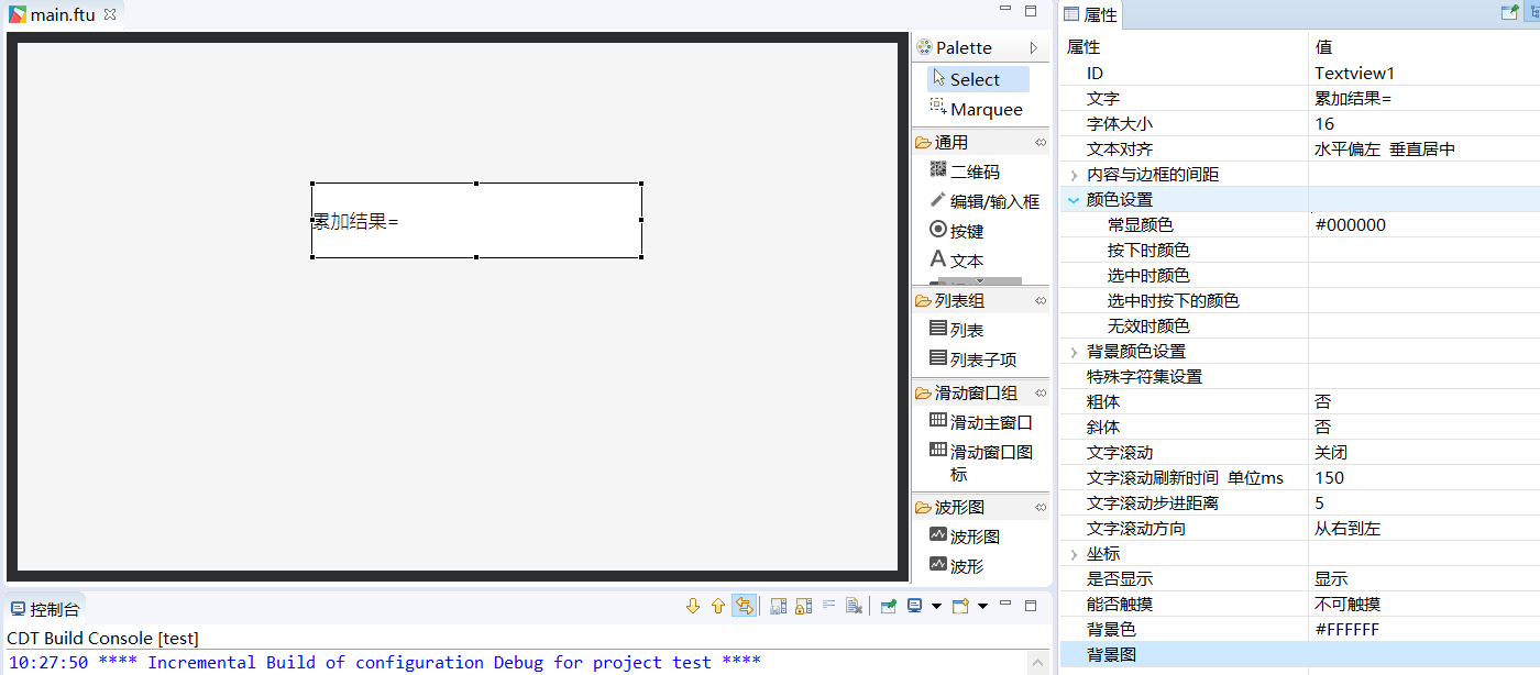 首先我们在UI文件中添加一个文本控件,用于显示累加的结果。